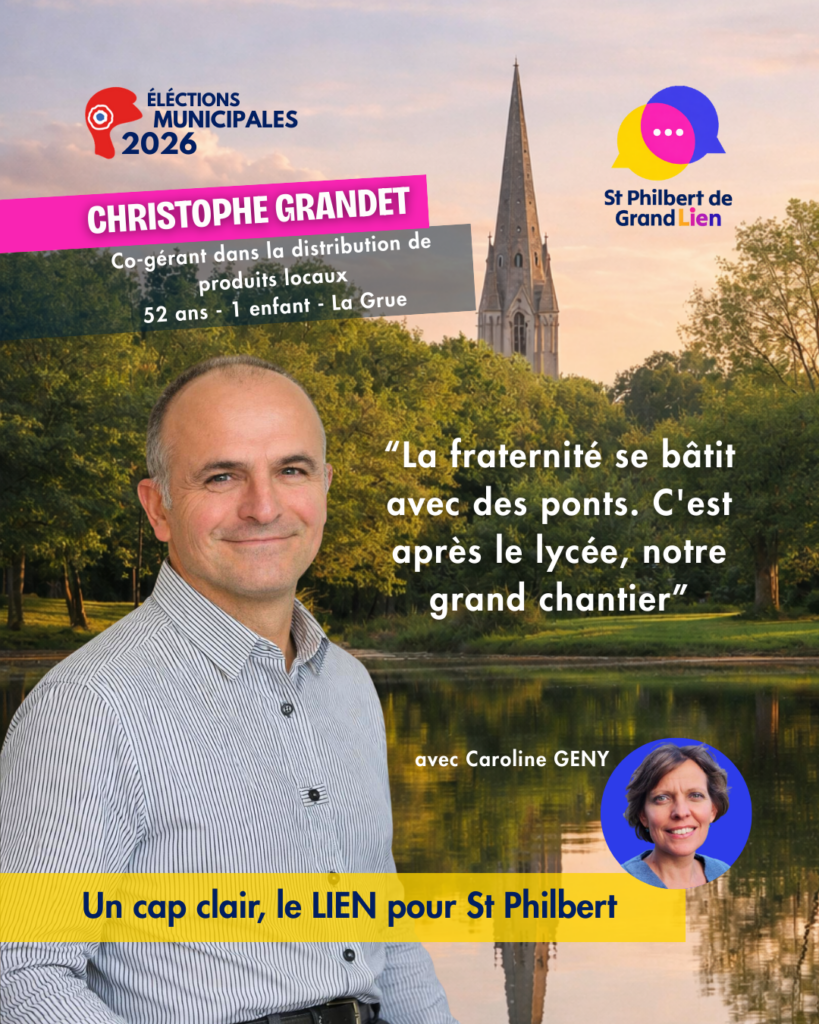 Pour Saint-Philbert, je souhaite plus de lien, plus d’écoute et de nouveaux projets pour une commune vivante, tournée vers l’avenir. Maire de Saint-Philbert-de-Grand-Lieu, je veux rassembler toutes les énergies et porter une attention particulière à la jeunesse, à l’inclusion et à la solidarité.
